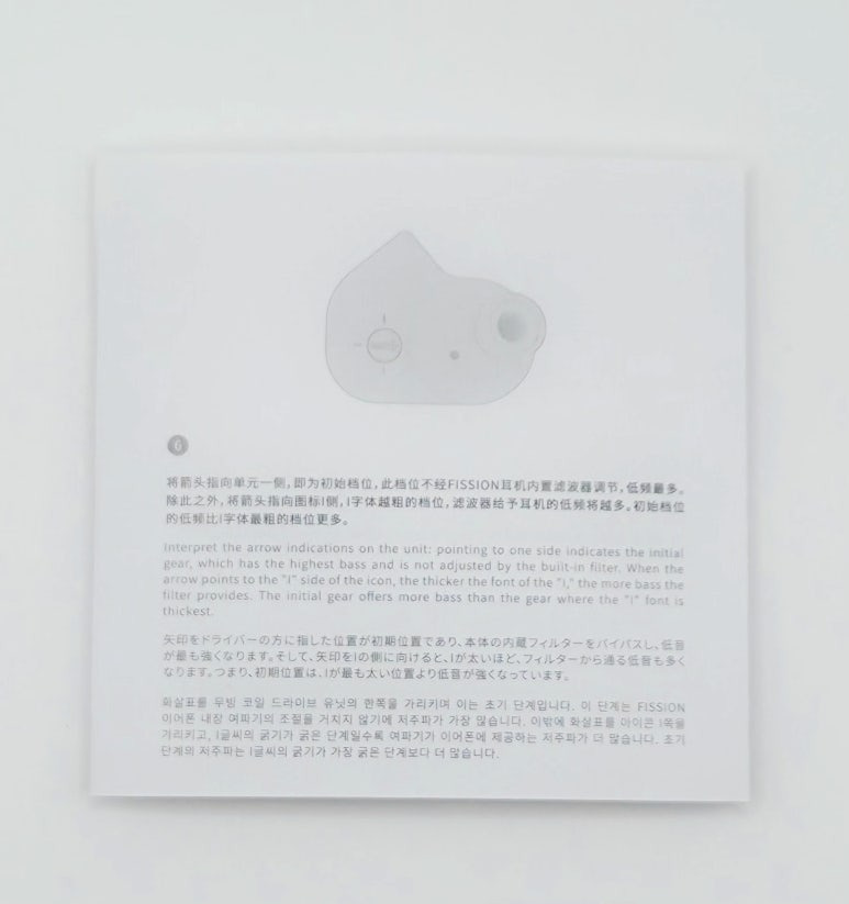 Fission은 어떠한 BA 드라이버 없이, 1DD(단일 다이내믹 드라이버) 구성의 이어폰입니다. 제조사 측에서도 Fission을 "Origin의 철학을 보다 대중적으로 구현한 단일 DD 튜닝 이어폰"이라고 명확히 언급한 바 있습니다. 복합 드라이버가 아닌 정밀하게 설계된 1DD 구조를 기반으로, 튜닝 노즐과 저음 조절 모드, 그리고 DSP(C타입)을 통해 유연한 사운드 커스터마이징이 가능한 것이 특징입니다. Oxgen에 들어가는 드라이버와 동일한 드라이버이기에 가능하지 않았나 생각합니다.
