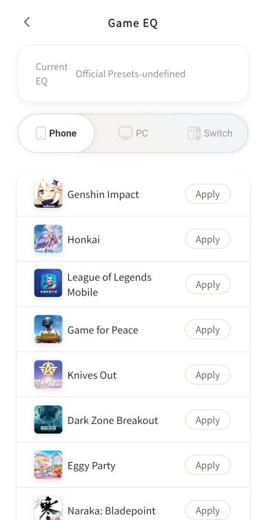 게임 이퀄라이저는 핸드폰, 모바일, 스위치로 구성되어 있으며 왠만한 모든 게임들이 다 있었습니다. 특히 배틀그라운드를 즐겨하신다면 꼭 어플을 다운받아 배틀그라운드 전용 이퀄라이저 사용을 권장합니다. 발소리가 조금 더 증폭되어 훨씬 쾌적한 게임이 가능했습니다.