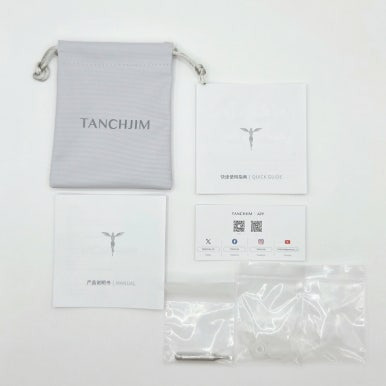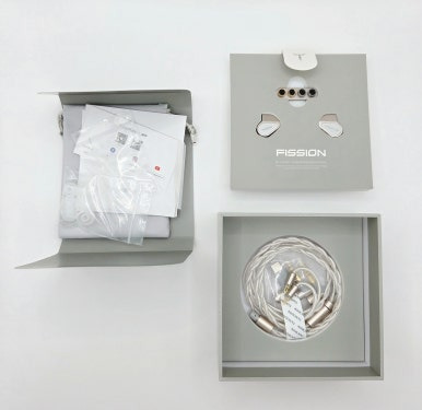 Fission의 구성품은 상당히 풍성했습니다. Tanchjim 로고가 각인된 방수 파우치, 알루미늄 베이스의 유닛, 구리 은도금 케이블, 한글 지원 보증서 및 설명서, 모드 변경용 드라이버, 다양한 이어팁, 3.5mm, 4.4mm, C-type(DSP 내장) 플러그, QR 코드(앱 연동용)가 포함되어 있습니다.