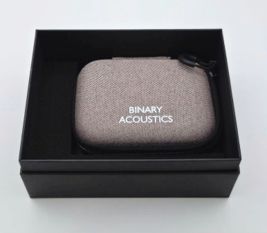 EP321의 구성품은 직관적입니다. 깔끔한 블랙 박스를 열면 Binary 로고가 새겨진 케이스가 가장 먼저 눈에 띄고, 스테인드글라스 패턴의 홀로그램 유닛, 이어팁 6쌍, 보증서가 함께 들어 있습니다.
